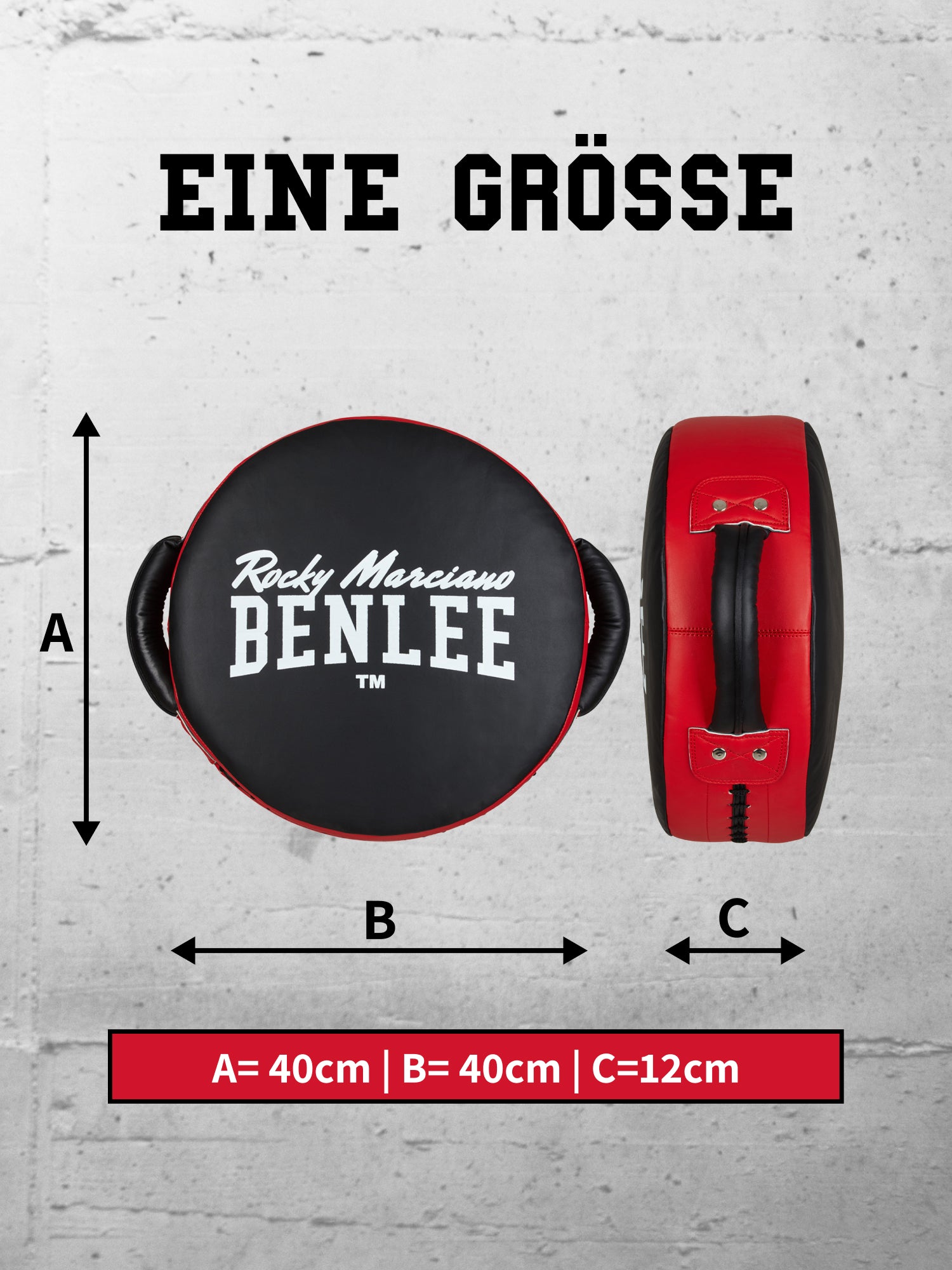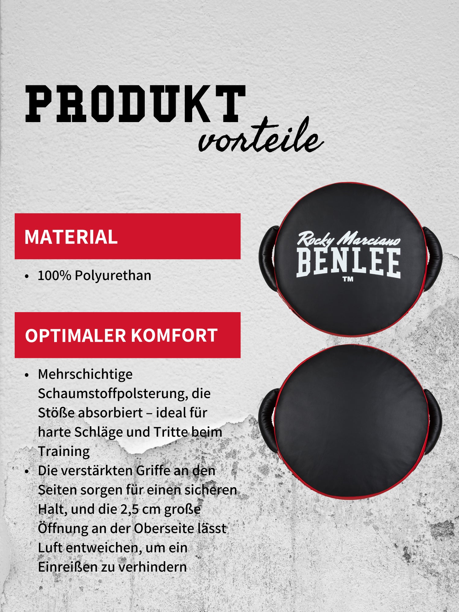 Das runde Schlagpolster SOLO ist aus strapazierfähigem Kunstleder gefertigt und enthält eine mehrlagige Schaumstoffpolsterung, die Stöße dämpft und daher ideal für schwere Schläge und Tritte während des Trainings ist. Die verstärkten Griffe an der Seite sorgen für einen sicheren Halt und die 2,5cm große Öffnung auf der Oberseite lässt Luft entweichen, um ein Reißen zu vermeiden. Größe: ca 40cm x 40cm x 12cm (H x B x T)