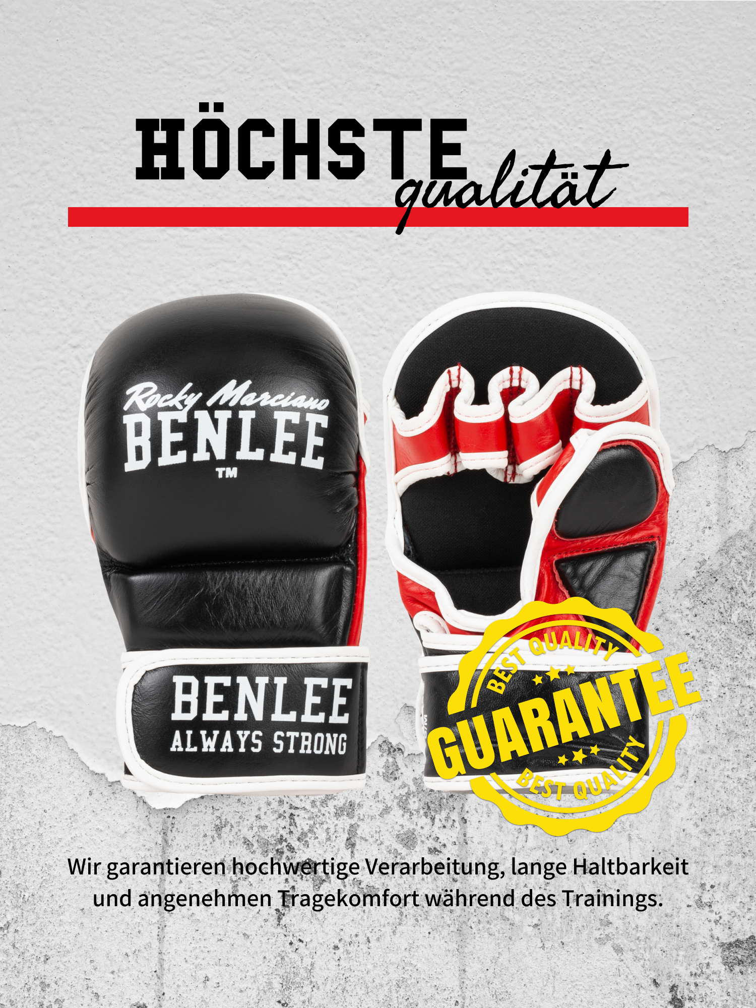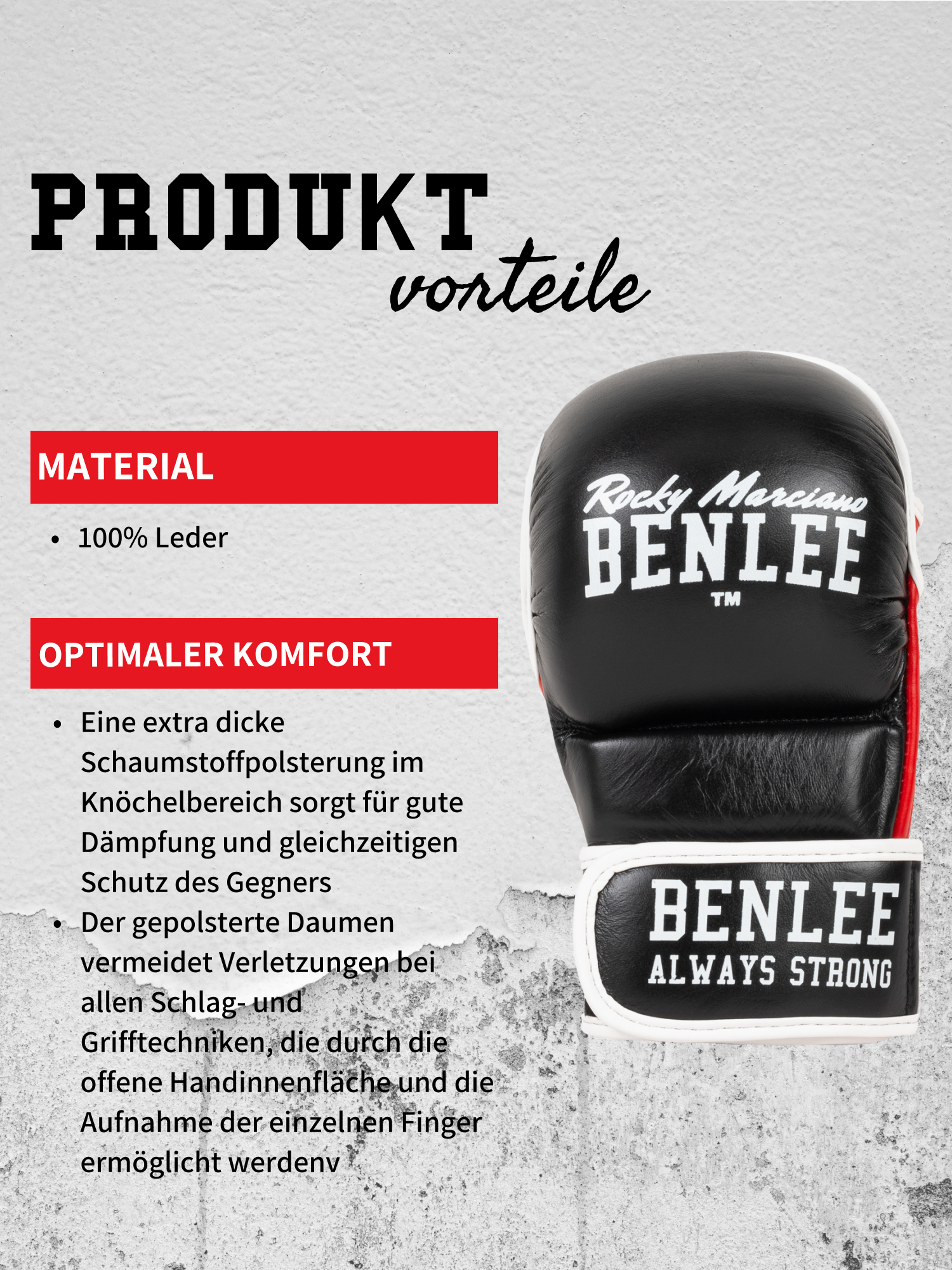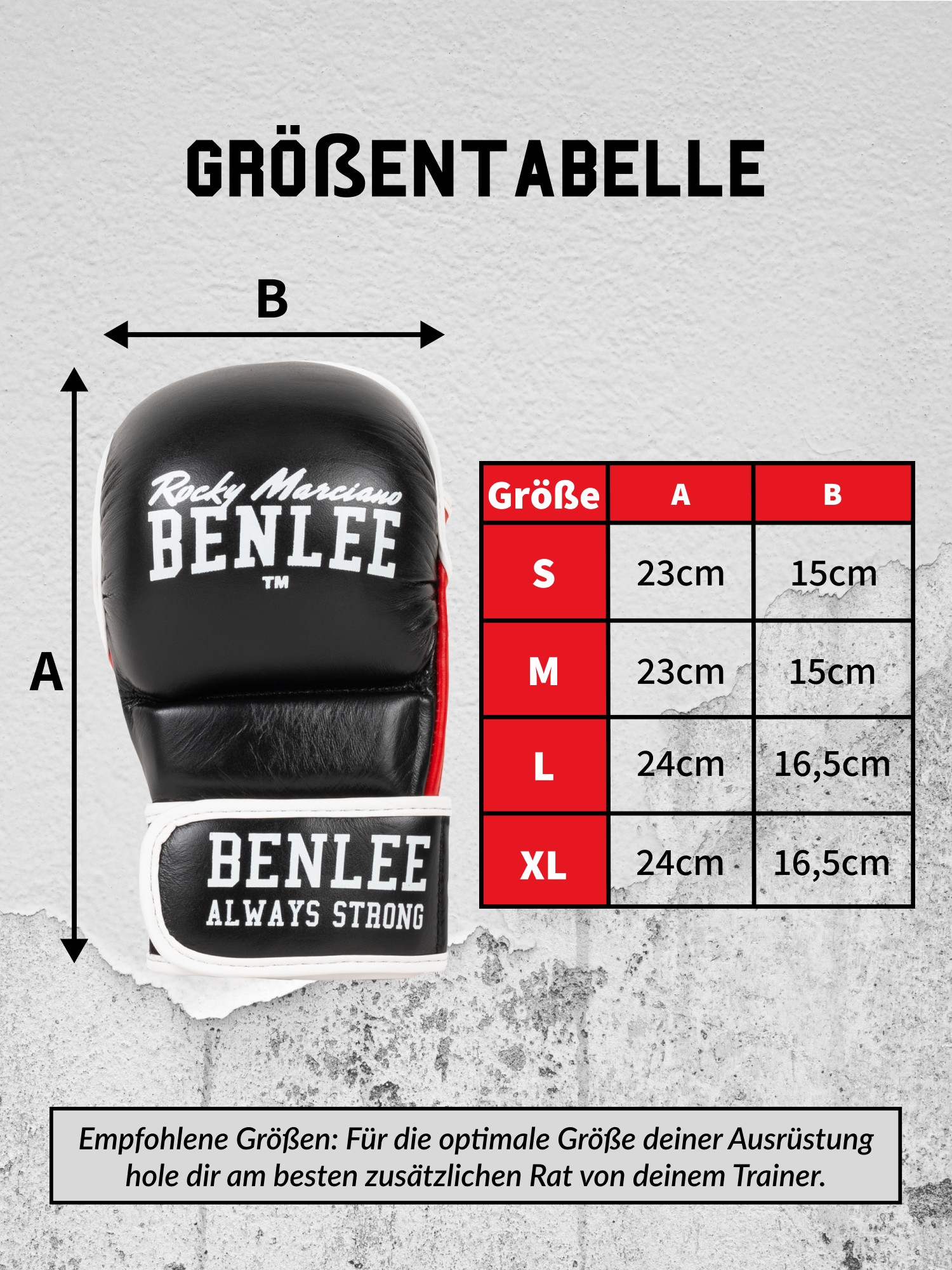Die Trainingshandschuhe STRIKER sind aus Leder gefertigt. Eine extra dicke Schaumstoffpolsterung im Knöchelbereich sorgt für gute Dämpfung und gleichzeitigen Schutz des Gegners. Der gepolsterte Daumen vermeidet Verletzungen bei allen Schlag- und Grifftechniken, die durch die offene Handinnenfläche und die Aufnahme der einzelnen Finger ermöglicht werden. Sichere Fixierung und besondere Stabilisierung des Handgelenkes durch einen ca. 30 cm langen, umlaufenden Klettverschluss.