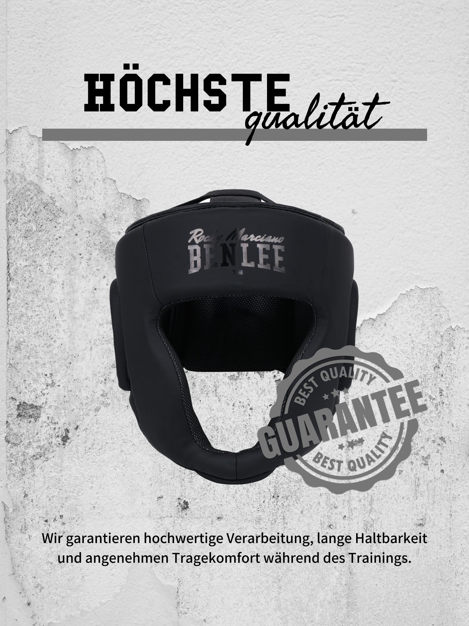Der Kopfschutz BLACK LABEL CAESAR besteht aus schwarz-mattem Kunstleder. Der monochrome Look wird durch das Logo auf der Vorderseite vervollständigt. Die verstärkten Bereiche am Ohr, an der Wange und am Kinn sorgen für einen vollständigen Gesichtsschutz und der verstellbare Klettverschluss am Hinterkopf sorgt für die nötige Fixierung. Größen: S/M für Kopfumfang ca. 55-65cm und L/XL für Kopfumfang ca. 60-70cm