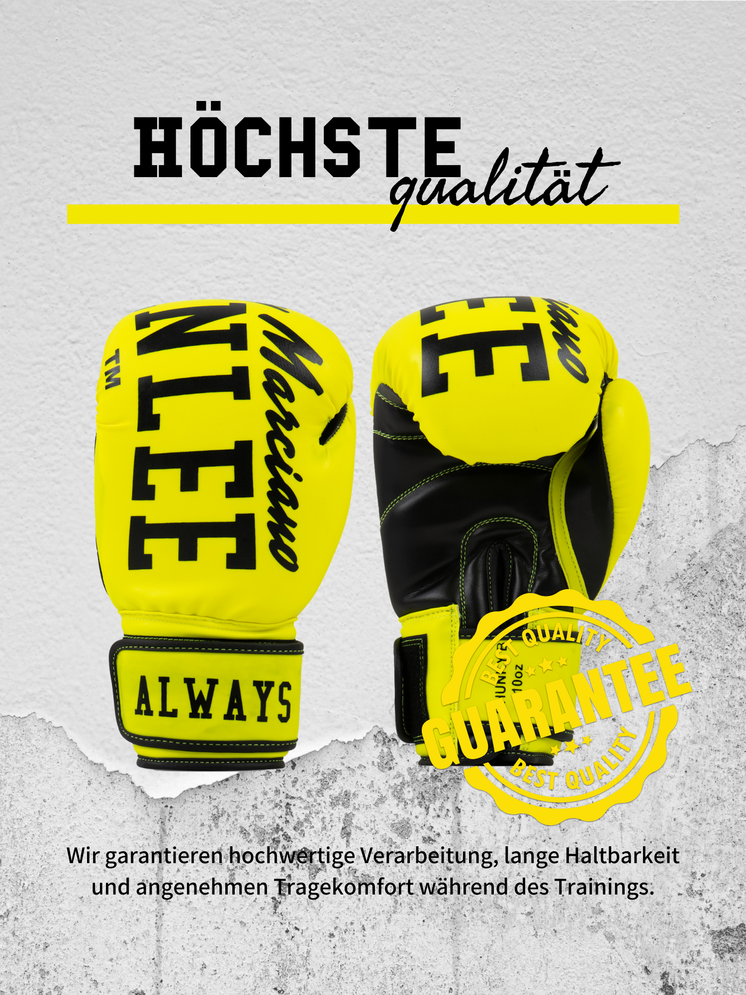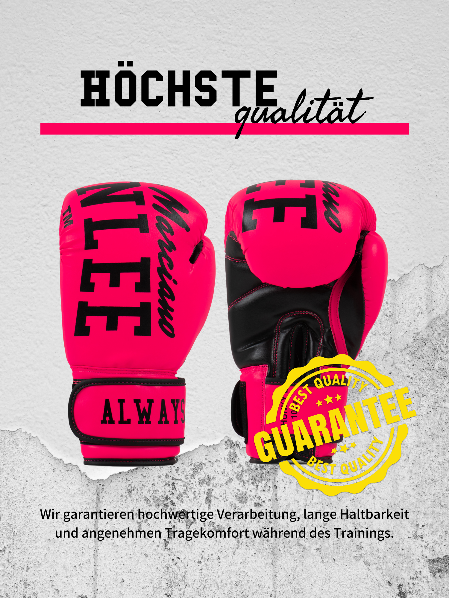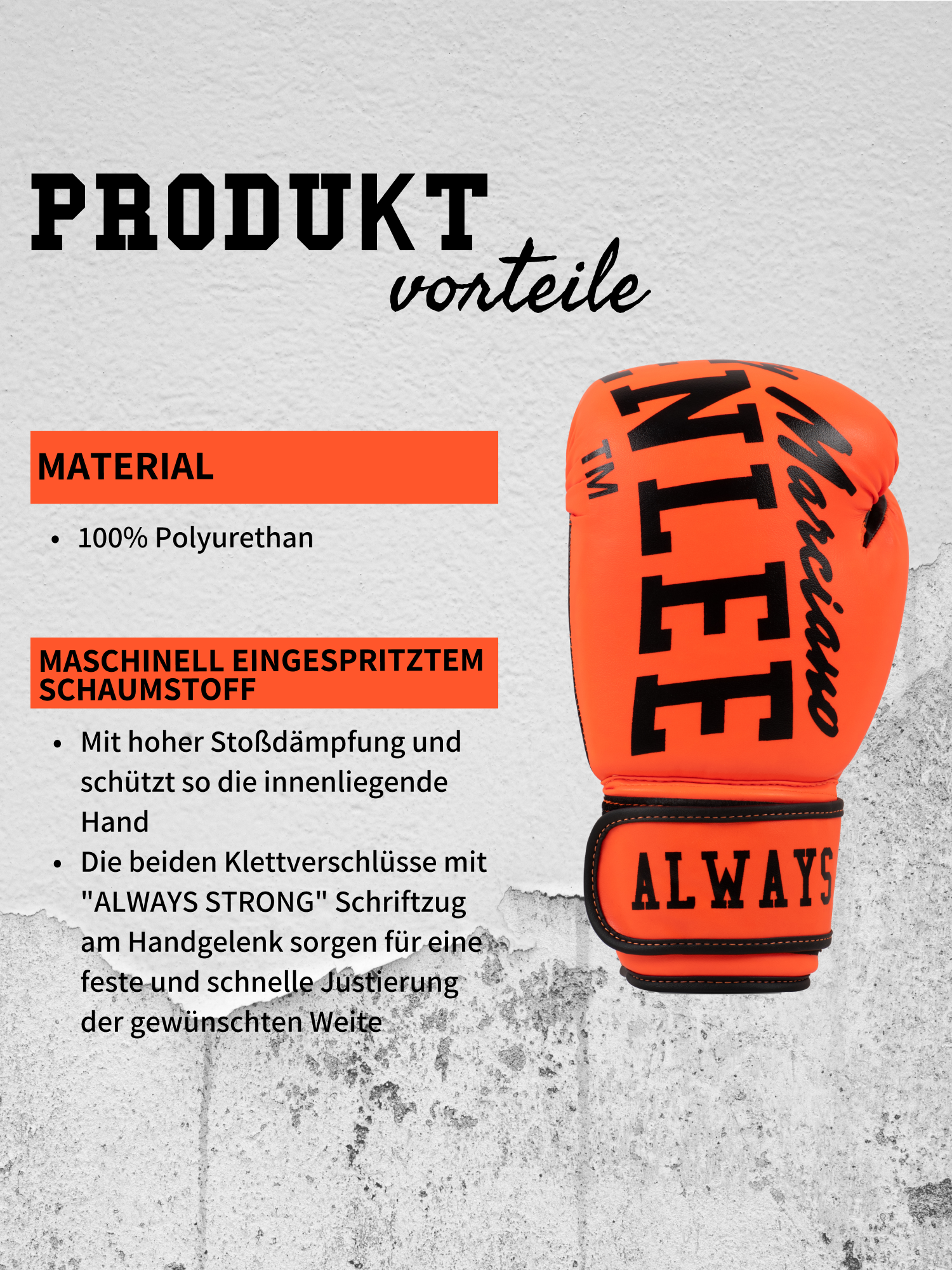 Du willst beim Training nicht nur gut ausgerüstet sein sondern gleichzeitig auch auffallen? Dann sind die CHUNKY B Handschuhe in leuchtenden Neonfarben genau das Richtige für dich. Die Füllung besteht aus maschinell eingespritztem Schaumstoff mit hoher Stoßdämpfung und schützt so die innenliegende Hand. Die beiden Klettverschlüsse mit "ALWAYS STRONG" Schriftzug am Handgelenk sorgen für eine feste und schnelle Justierung der gewünschten Weite. Und der letzte Clou: werden die beiden Handschuhe aneinander gehalten, entsteht das komplette BENLEE Logo.