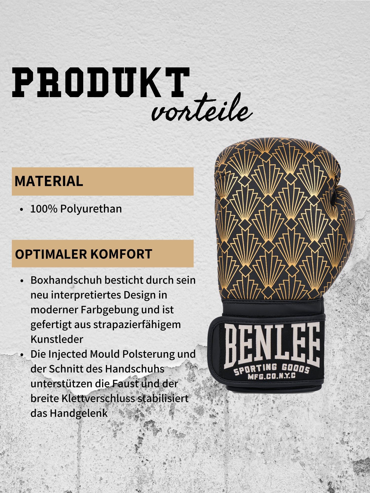 Dieser BENLEE Boxhandschuh besticht durch sein neu interpretiertes Design in moderner Farbgebung und ist gefertigt aus strapazierfähigem Kunstleder. Die Injected Mould Polsterung und der Schnitt des Handschuhs unterstützen die Faust und der breite Klettverschluss stabilisiert das Handgelenk. Optisch ein echter Hingucker, unterstützt durch das große Satin Logo-Etikett.